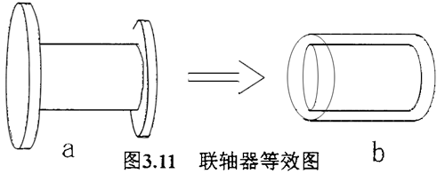 首先進(jìn)行等效處理,將聯(lián)軸器兩端鐵圈的轉(zhuǎn)動(dòng)慣量等效均布到中間橡膠元件的軸上。等效的原則是轉(zhuǎn)化前后系統(tǒng)總的轉(zhuǎn)動(dòng)慣量不變。圖3.11中b的虛線表示等效后的均布載荷。