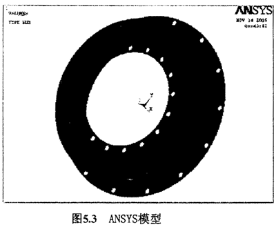 在ANSYS中建立模型,先通過建立如5.2所式二分之一的剖面圖,通過繞中軸線旋轉(zhuǎn)建立模擬模型如下圖5.3