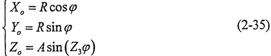 在理想情況下,活齒的中心O沿空間正弦曲線運(yùn)動(dòng),其軌跡曲線LO方程為: