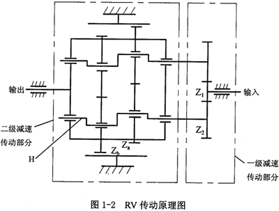 在K-H-V型行星齒輪傳動基礎(chǔ)上,發(fā)展起來的RV傳動和雙曲柄式少齒差行星傳動機(jī)構(gòu)在工程上得到了較好地應(yīng)用。圖1-2所示為RV傳動原理圖。