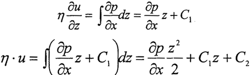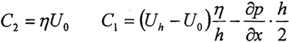 用邊界條件確定C1和C2。由于界面上流體速度等于界面速度,如果兩固體表面的速度為U0和Uh,即當(dāng)z=0時,u=U0;當(dāng)z=h,u=Uh。求得