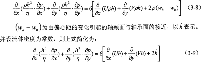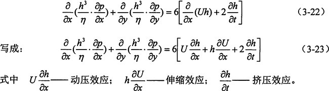 必須強(qiáng)調(diào)指出:上式的Reynolds方程是根據(jù)一系列假設(shè)推導(dǎo)出來的,適用于一般工況條件的潤滑計算。在特殊的工況條件下,當(dāng)某些假設(shè)不能成立時,必須針對具體情況推導(dǎo)相應(yīng)的Reynolds方程形式。