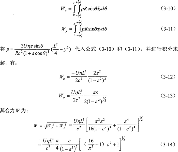 式中 W——總載荷;c——半徑間隙;U——軸表面圓周速度;ε——偏心率;η——粘度;L——軸承的總軸向長度。