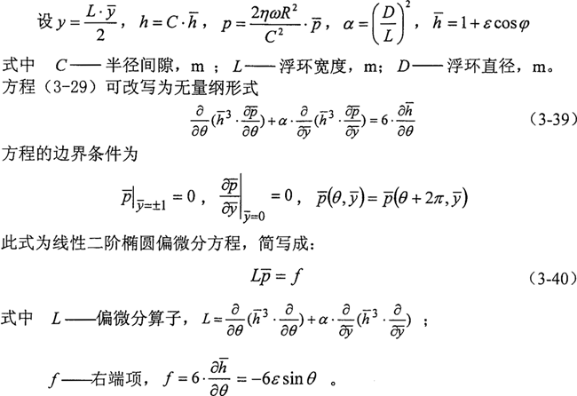 由于將有量綱方程化為無是綱形式后,方程形式主得簡單,便于計(jì)算,而獲得的結(jié)果又便于推廣到與此軸承相似的各類尺寸的軸承,故,有必要將雷諾方程無量綱化。