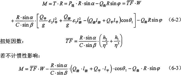 公式(6-2)、(6-3)為雙擺機減速器曲柄軸扭矩的計算公式。