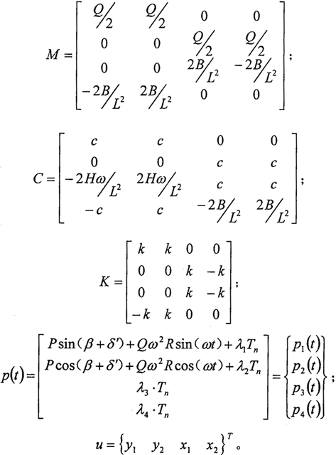 方程中的慣性矩陣、阻尼矩陣和剛度矩陣均勻為非對角陣,故,該方程是一個相互耦合的二階常微分方程組。