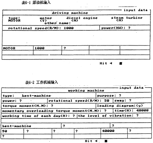 系統(tǒng)的輸入是專家系統(tǒng)的“開場(chǎng)條件”,人工設(shè)計(jì)的方法是由定貨單位向設(shè)計(jì)人員提供任務(wù)書(以口頭或書面形式),設(shè)計(jì)人員通過(guò)這些已知條件進(jìn)行設(shè)計(jì)工作。專家系統(tǒng)則要求設(shè)計(jì)人員(或由定貨人員)與計(jì)算機(jī)進(jìn)行“對(duì)話”,以便使專家系統(tǒng)了解原始的已知條件。事實(shí)上,由于受人工智能和計(jì)算機(jī)技術(shù)發(fā)展的限制,還不能同計(jì)算機(jī)形成視、聽對(duì)話,因而,圓柱齒輪減速器設(shè)計(jì)專家系統(tǒng)仍采用傳統(tǒng)CAD所采用的方法,即采用精確的輸入方式(或稱數(shù)據(jù)輸入方式而非語(yǔ)言物入方式)。