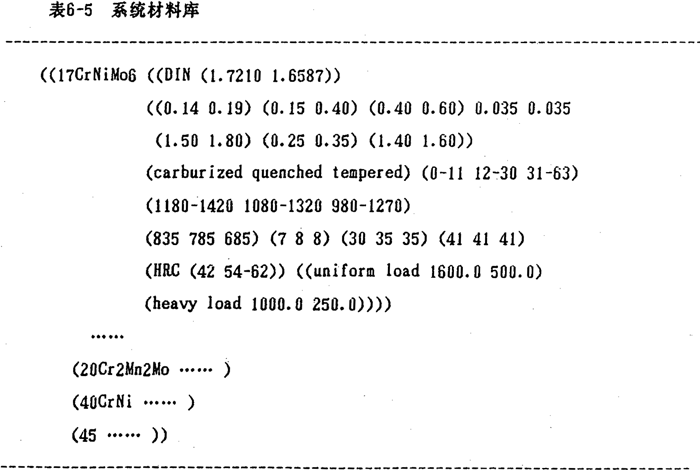 軸、箱體以及對(duì)大型組裝具輪采用的支撐部分的材料的選擇方法類同于齒輪材料,在此不詳細(xì)討論。若當(dāng)前材料數(shù)據(jù)庫(kù)無(wú)可供選擇的材料時(shí),系統(tǒng)便要求用戶輸入指定的材料特性,并按相應(yīng)的格式加入到材料數(shù)據(jù)庫(kù),以便不斷地完善系統(tǒng)的材料庫(kù)。