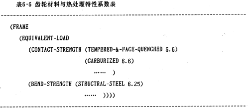 材料確定后,根據(jù)選擇材料的種類,可以確定所采用的熱處理工藝,(可從表6-5中看出)并同時(shí)確定齒輪材料與熱處理特性系數(shù),有表6-6(框架方法)表示之,特殊情況這里不予考慮。