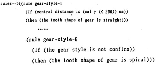 規(guī)則l的條件項(xiàng),初次使用時(shí),由于中心距尚未確定,不能觸發(fā)運(yùn)用。系統(tǒng)采用的方法是先用初次選用的齒形參與傳動(dòng)計(jì)算,待求出中心距時(shí)再次調(diào)用該規(guī)則集進(jìn)行推理。若于原來(lái)的假設(shè)發(fā)生沖突,撤銷原假設(shè)并以新事實(shí)重新進(jìn)行計(jì)算。