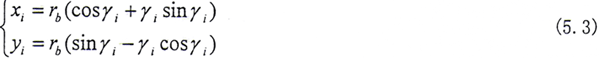 設(shè)Si(oixiyizi)坐標(biāo)系是與內(nèi)齒套固連的動(dòng)坐標(biāo)系,如圖5.2所示。xi軸與內(nèi)齒套某一齒的一側(cè)齒形相交于基圓(半徑為rb)上,z軸與內(nèi)齒套軸線重合,oi為坐標(biāo)原點(diǎn)。設(shè)S(oxyz)坐標(biāo)系為固定坐標(biāo)系,則有