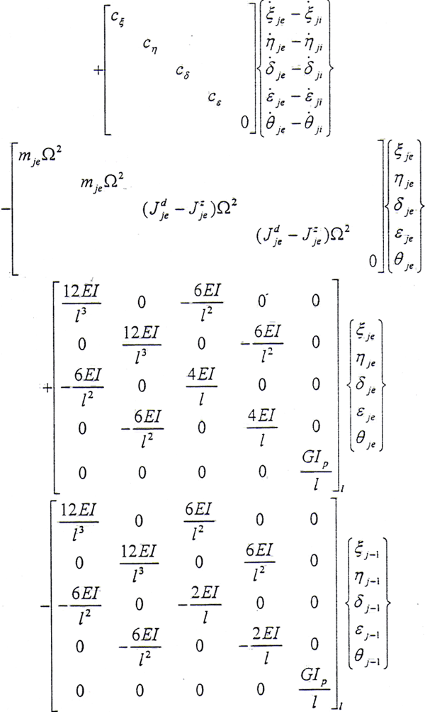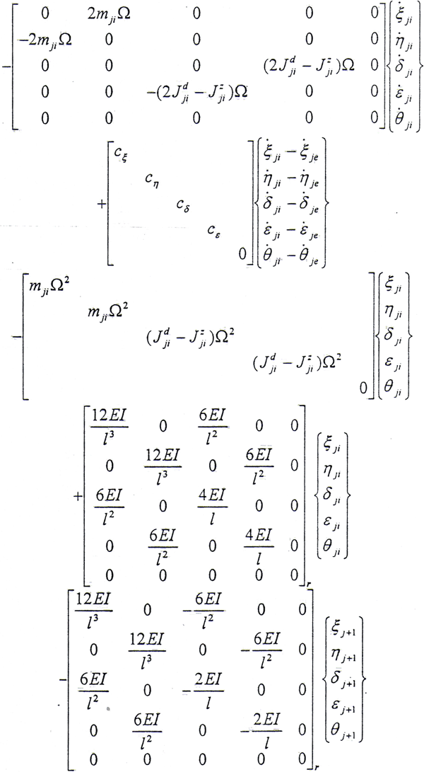 加到相應(yīng)結(jié)點(diǎn)處的運(yùn)動(dòng)方程的左邊,即可得到在旋轉(zhuǎn)坐標(biāo)系中的軸承—轉(zhuǎn)子—齒輪聯(lián)軸器系統(tǒng)的運(yùn)動(dòng)微分方程。