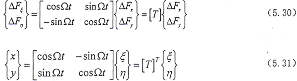 (5.27)式、(5.28)式中所定義的Ω方向與Z軸方向相同,當(dāng)Ω方向與Z軸方向相反時(shí),Ω以-Ω代入即可。從上式可見,方程系數(shù)矩陣中的元素與βE有關(guān),而βR又與系統(tǒng)的廣義坐標(biāo)有關(guān),因此方程是非線性的。只有在βR變化很小時(shí)才能進(jìn)行線性分析。