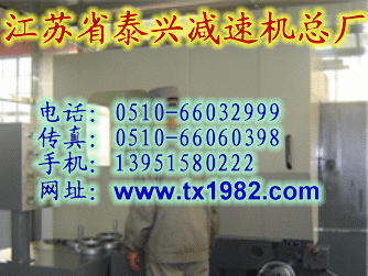 江蘇泰興減速機(jī)總廠業(yè)務(wù)部 在改革開(kāi)放中崛起的江蘇省泰興減速機(jī)廠,現(xiàn)已成為中國(guó)減速機(jī)生產(chǎn)基地,中國(guó)機(jī)械工業(yè)500強(qiáng)重點(diǎn)企業(yè)。2004年公司完成含稅銷(xiāo)售收入6億元,創(chuàng)利稅1.5億元,交納泰興兩稅及基金規(guī)費(fèi)8500萬(wàn)元。公司