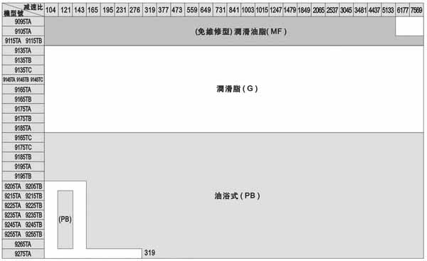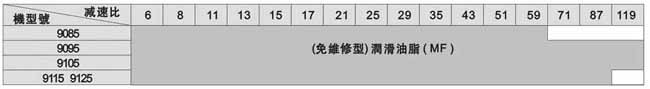 注:此表所列為輸入轉(zhuǎn)速為標(biāo)準(zhǔn)轉(zhuǎn)速情況下,標(biāo)準(zhǔn)潤滑方式。