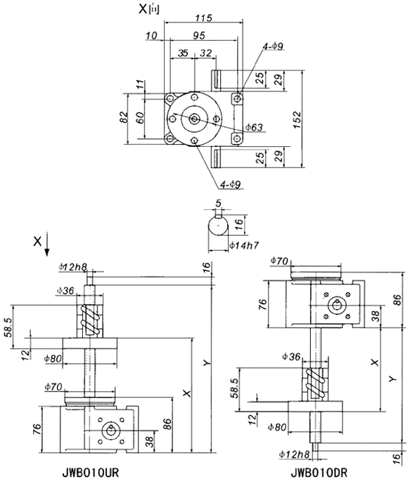 JWB025絲杠升降機(jī)外形尺寸