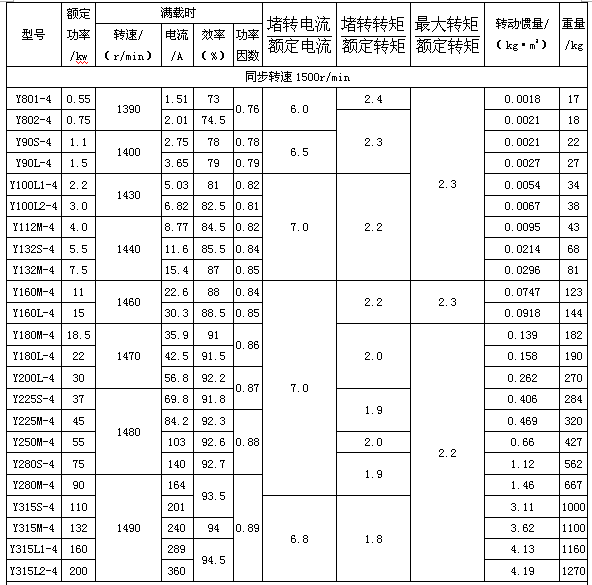 電動機以連續(xù)工作制(S1)為基準(zhǔn)的連續(xù)定額,定電壓為380V,額定頻率為50HZ,3kw及以下者為Y聯(lián)結(jié),4kw及以上者△聯(lián)結(jié)。