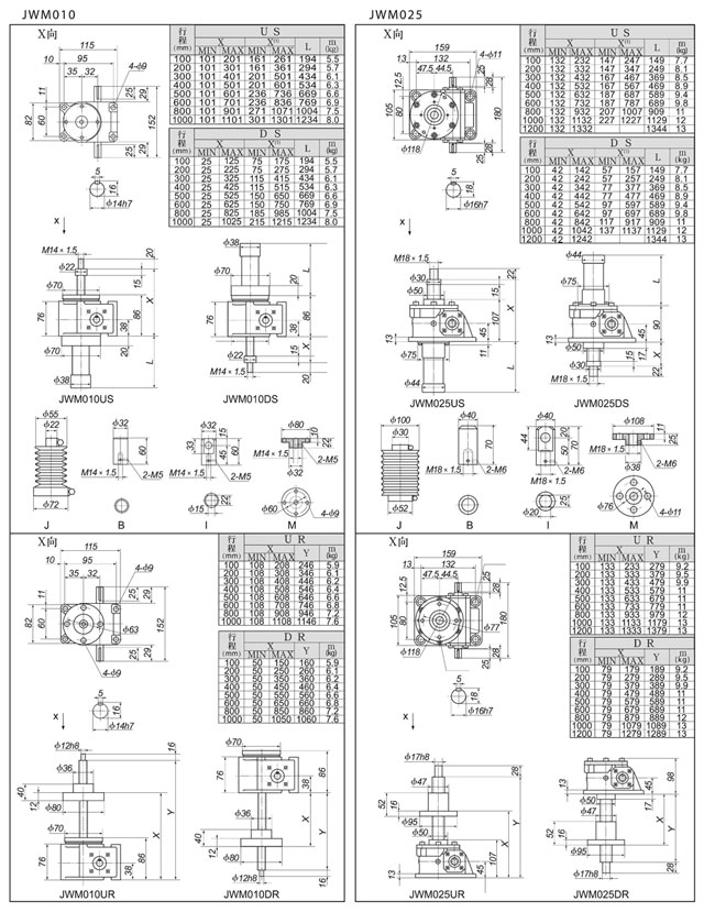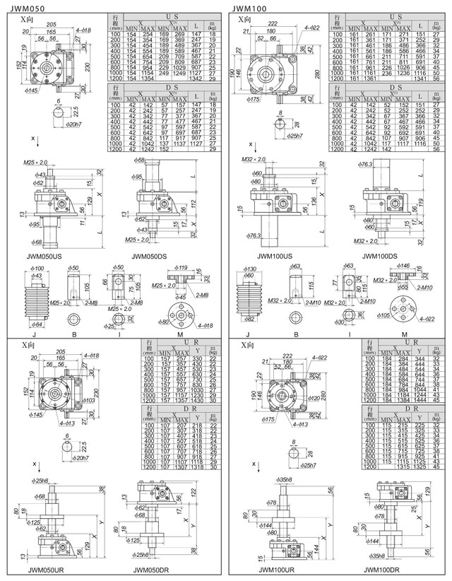 ![]() ![]() ![]() 四、JWM(梯形絲桿型)基本參數(shù)一覽表