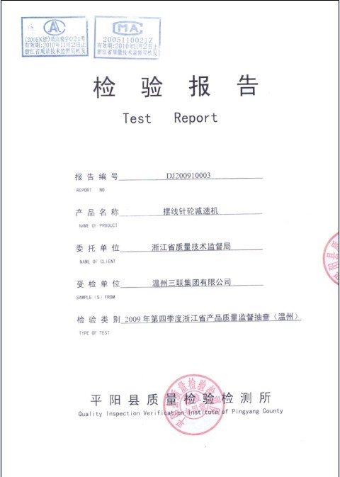 發(fā)證機構:天津減速機股份有限公司中心實驗室
