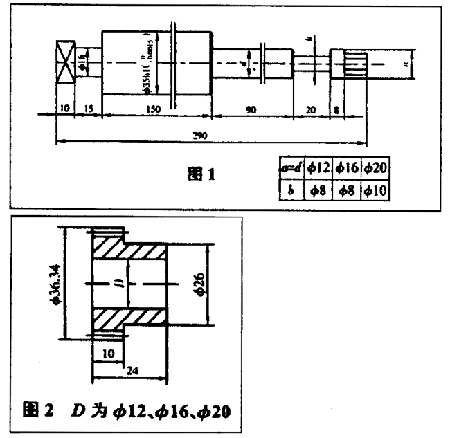 芯軸分析:油缸修復(fù)后,我們曾按照隨機(jī)芯軸圖樣(如圖l )加工一批芯軸(外徑已加大0.005mm) ,但加工出的齒輪存在同樣的問題:在我們一一排除了墊圈的平行度,刀具刃磨誤差等因素后,確定問題出在芯軸上。檢查加工后的齒輪發(fā)現(xiàn)兩個問題:一是有的齒輪齒厚不一,齒面寬窄不同,而只有在齒輪加工時齒輪偏離了機(jī)床中心才會出現(xiàn)這種情況,說明齒輪在加工時壓緊不牢。二是有的齒輪只是徑向跳動δej 或光潔度差,出現(xiàn)這種情況說明芯軸本身剛性不足,導(dǎo)致加工時產(chǎn)生振動。